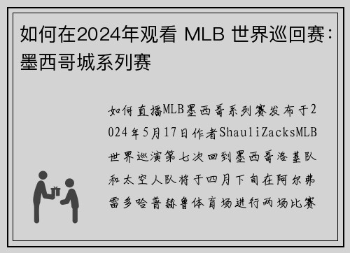 如何在2024年观看 MLB 世界巡回赛:墨西哥城系列赛