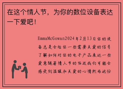 随著情人节的临近,我们可能会感受到温暖和关爱的心情。然而,这份情感应该留给我们的挚爱,而不是数位设备。就像建立一段坚固的关系需要关怀和注意,确保设备的优质和持久性也同样需要。
